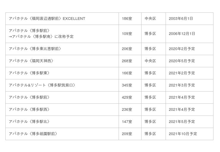 ※アパホテル〈博多駅前〉はアパホテル〈博多駅南〉に改称予定