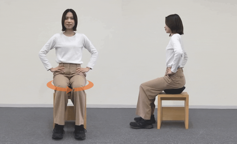 意識して運動しなくても、座ることで不安定さを感じられ、少ない動きで骨盤周りの筋肉のストレッチが行えます。ストレッチをすることで、バランスの取れた姿勢で腰椎の可動域も広げ、骨盤と腰椎周りの筋肉が伸びて柔軟性が強化されます。これにより体の動きがスムーズになり、スポーツ時のパフォーマンス向上や仕事、家事などで腰の負担を軽減することが期待できます。