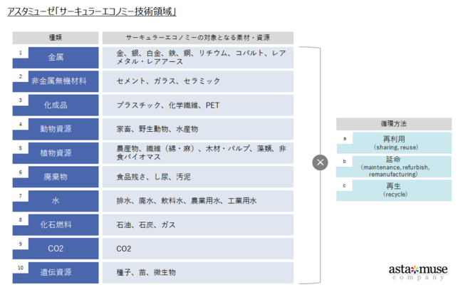 図1:アスタミューゼ「サーキュラーエコノミー技術領域」