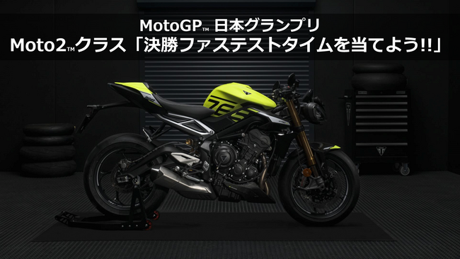 更に【予選最速ラップタイム予想】【決勝ファステストタイム予想】の2つのキャンペーンのどちらかにご応募いただき、MotoGP(TM)日本グランプリ会場内のトライアンフブースに来場された方は3つ目の【トリプルキャンペーン】へ挑戦が可能となります!