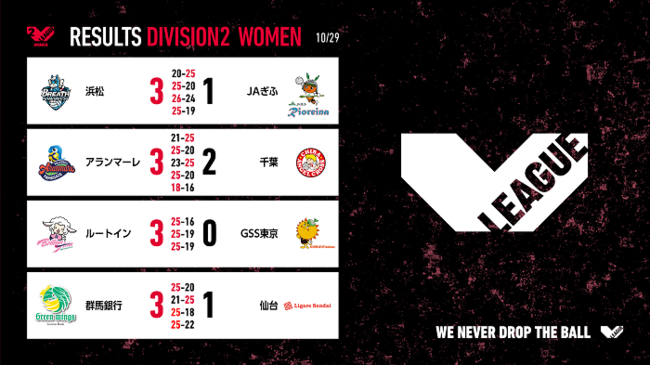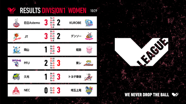 バレーボール国内最高峰リーグ V.LEAGUE【10月29日の試合結果】