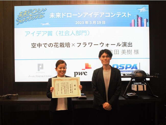 総合人材サービス・パーソルグループのパーソルプロセス&テクノロジー株式会社(東京都江東区、代表取締役社長:横道 浩一、以下「パーソルP&T」)は、PwCコンサルティング合同会社(東京都千代田区、代表執行役CEO:大竹 伸明、以下「PwCコンサルティング」)と一般社団法人 ドローンサービス推進協議会(東京都港区、代表理事:鈴木 真二、以下「DSPA」)と共同で開催した「未来ドローンアイデアコンテスト」の受賞作を発表し、表彰式を開催しました。