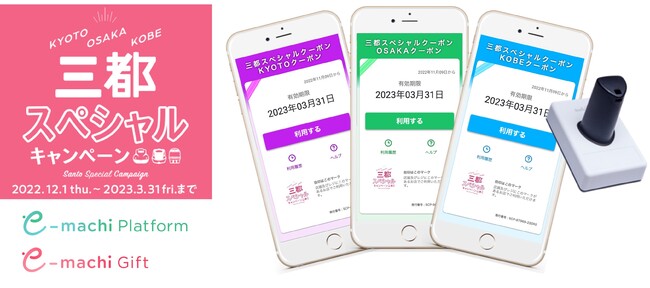 eギフトプラットフォーム事業(※1)を展開する株式会社ギフティ(本社:東京都品川区/代表取締役:太田 睦、鈴木 達哉/以下、ギフティ)は、西日本旅客鉄道株式会社(本社:大阪市北区/代表取締役社長:長谷川 一明/以下、JR西日本)と、京都・大阪・神戸観光推進協議会(※2)が2022年12月1日(木)から2023年3月31日(金)の期間で実施する「三都スペシャルキャンペーン」に、自治体・地域の課題を解決するデジタルプラットフォーム「e街プラットフォーム(R)」(※3)を採用いただきました。これにより、従来紙で発行および運用されていたキャンペーン特典「三都スペシャルクーポン」が電子化されましたので、お知らせいたします。なお、「三都スペシャルキャンペーン」での当プラットフォームの採用は、2022年1月につづき2度目となります。