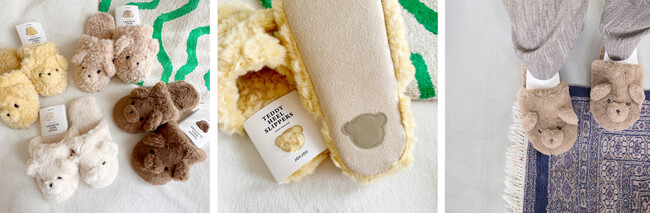 冷えが気になる足元には、柔らかファーの「テディスリッパ」がおすすめ。テディウォーマーとお揃いで使いたい、ぬいぐるみみたいに可愛いスリッパです。ふわふわで包み込まれるようなあたたかさ。ご家庭で洗濯できるので、清潔にお使いいただけます。