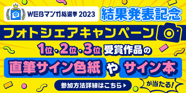 「WEBマンガ総選挙2023」第1〜3位受賞作品を対象にフォトシェアキャンペーンを実施します。