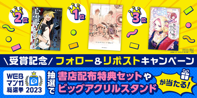 「WEBマンガ総選挙2023」第1〜3位受賞作品を対象にフォロー&リポストキャンペーンを実施します。