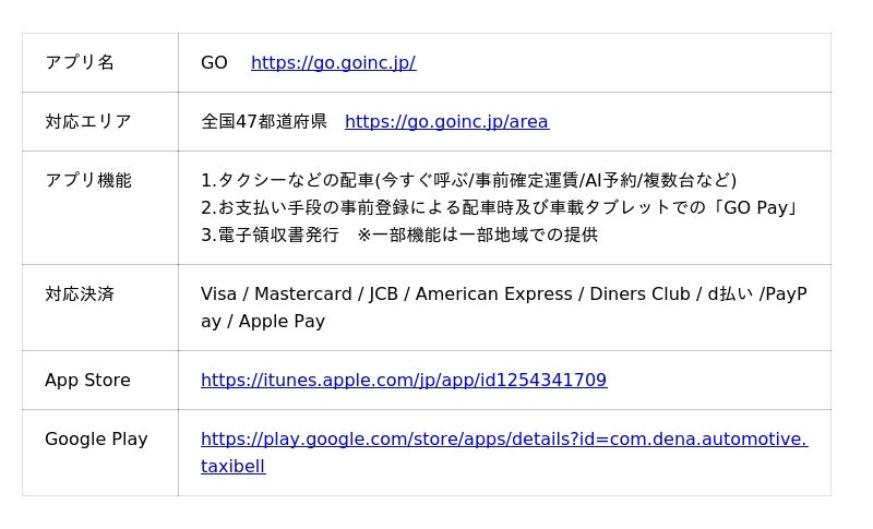 - 決済 : GO Pay決済(クレジットカード・d払い・PayPay)のみ、車内決済不可