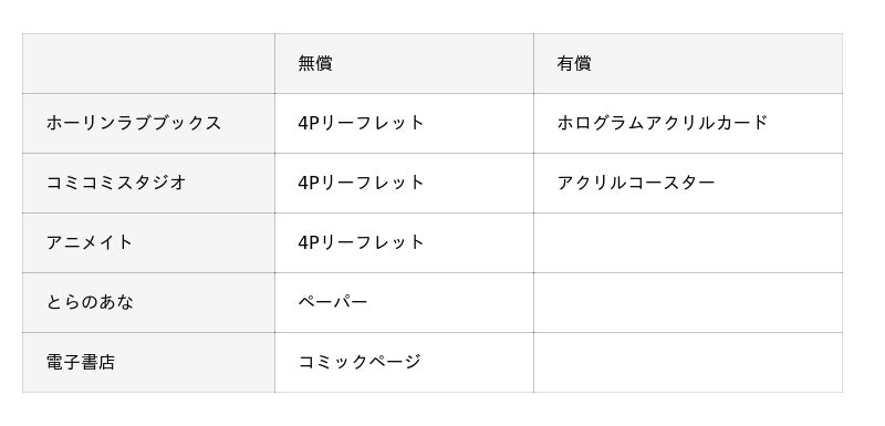 電子書店特典一覧
