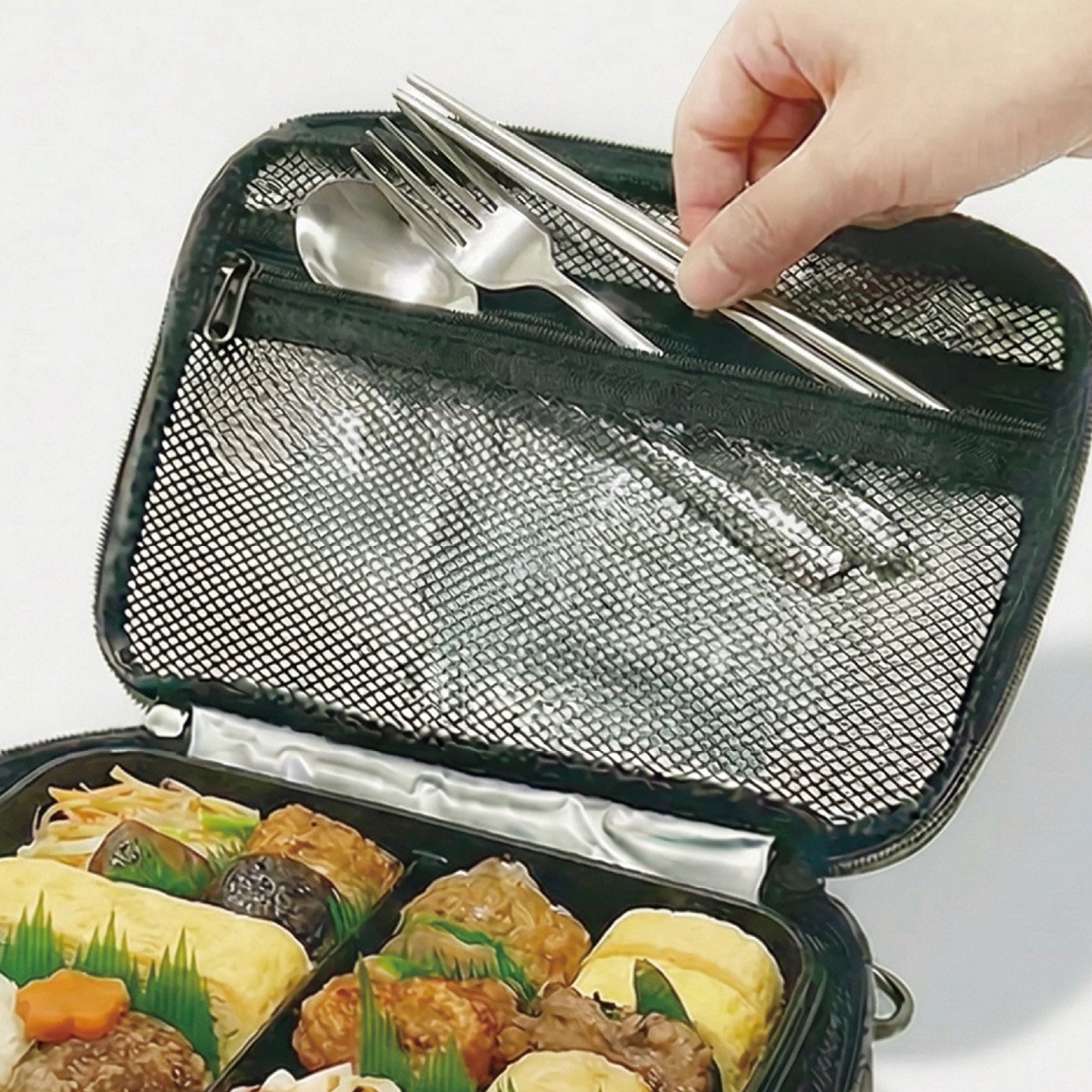 保冷剤やカトラリーを一緒に入れられるため、