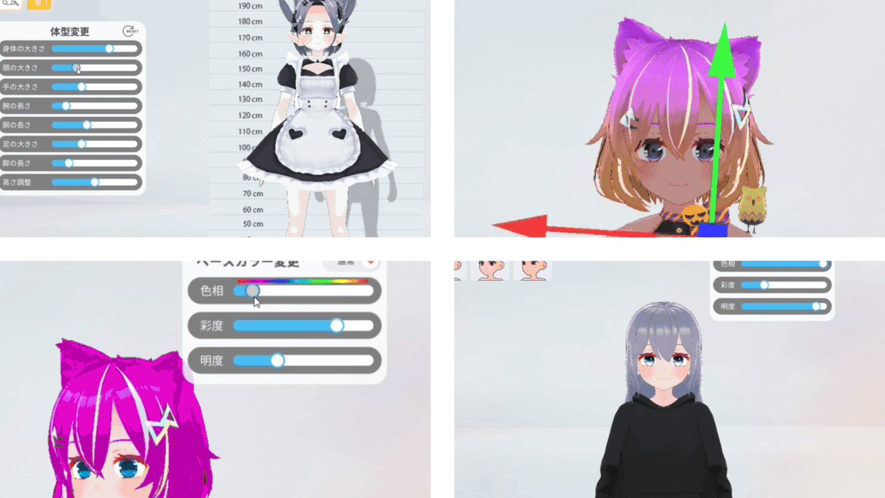スライダーで簡単に髪色や肌色などを変更できる機能です。