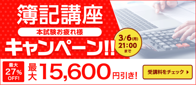 【簿記講座】本試験お疲れ様キャンペーン 実施中