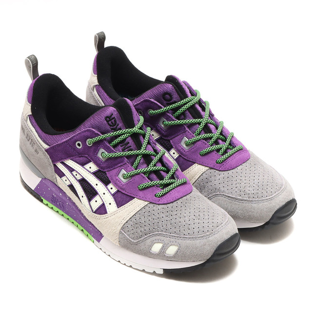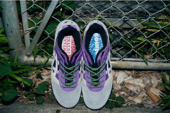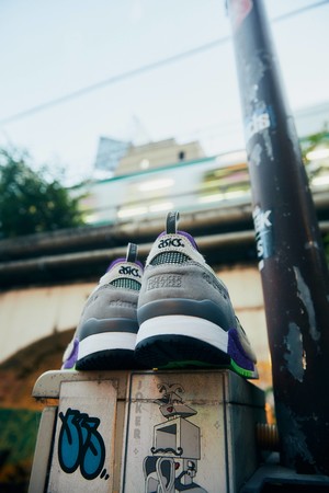 1990年に誕生し、その特徴的なデザインから長年愛され続けているGEL-LYTEIIIをatmosとSNEAKER FREAKERがアレンジ。東京とメルボルンの街に共通する路地裏の野良猫をファーや蓄光素材で表現、さらに夜の街のネオンをパープルとグリーンで再現しています。