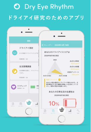 *1 ドライアイリズム(R) : 2016年10月に順天堂大学眼科がResearchKitを用いて作成したドライアイ研究のためのスマートフォンアプリケーション。ドライアイの症状、瞬目(まばたき)の計測、花粉症によるQoLや労働生産性への影響などの評価が可能である。ドライアイリズム(R)の商標は順天堂大学発のベンチャー企業であるInnoJin株式会社が保有します。