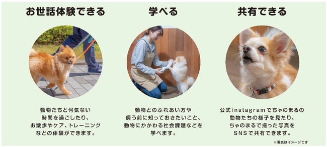 「ちゃのまる」はワンちゃんやネコちゃんとふれあい、お世話をしながら、一緒に楽しい時間を共有できる“ ちゃのま”のようなシェアリビングです。運営にあたっては、ペットショップ「Pet Plus」などを展開する株式会社AHBとパートナー連携し、動物とのよりよい暮らしへの理解を深められる地域のシェアリビングの実現に向けて検証を進めています。