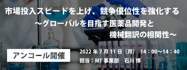 AI自動翻訳のロゼッタ ウェビナー『市場投入スピードを上げ、競争優位性を強化する 〜グローバルを目指す医薬品開発と機械翻訳の相関性〜』7月11日(月)開催