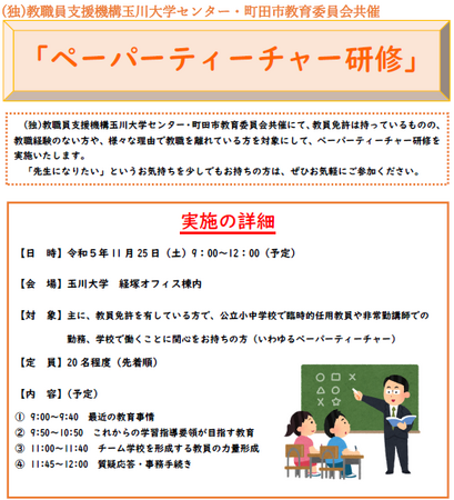 【東京都町田市】ペーパーティーチャー研修を開催します