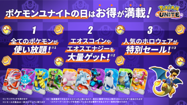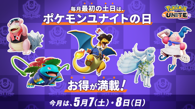 毎月第1土曜日から2日間は、「ポケモンユナイトの日」!! 5月7日(土)・8日(日)から始まります。<開催期間:5月7日(土)9時〜9日(月)8時59分>