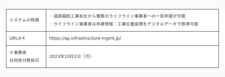 なお、ガス、電気、水道、通信のライフライン事業者にワンストップで申請できる仕組みにより、建設業界の働き方改革やDX推進などの社会課題の解決にも貢献できる取組みとなります。