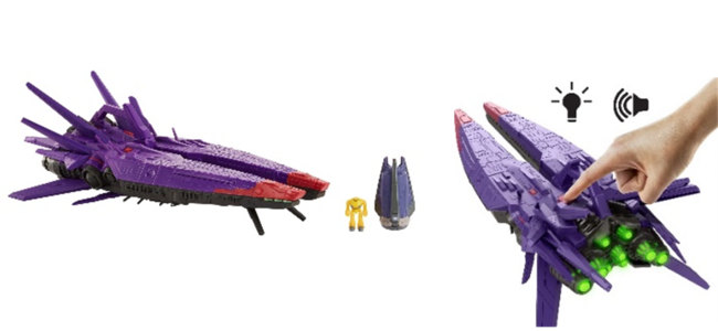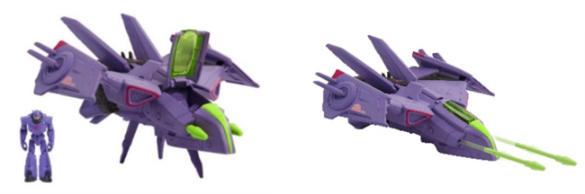 ザーグのマザーシップ1つとポッド1つ、ザイクロプスのフィギュア1つが含まれているセットです。ライトとエンジン音が興奮を誘い、トゲのある尾翼は敵を威嚇するようなデザインで、ボタンを押すと底面の一部が開き、ザイクロプスのポッドが落ちる仕様になっています。