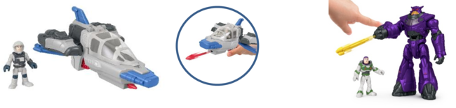 全長約24cmのシップと約6cmのザーグのフィギュアのセットで、ザーグのフィギュアはコックピットに座れるように関節が可動し、腕についたボタンを押してミサイル発射!リアルなバトルプレイが楽しめます。ビークルやフィギュアを揃え、ライトイヤーのディスプレイを完成させれば遊びの幅が広がります。