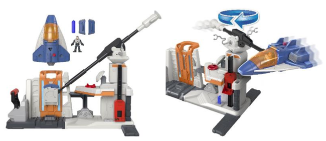 たくさんのしかけと世界観を楽しむことができるプレイセットです。赤いボタンを押すとビークルが発射!発射音やライティングも楽しめます。レバーを引く速さに合わせてビークルが飛び回り、効果音がなります。キャラクターをエレベーターに乗せて移動したり、宇宙遊泳をさせることも。ビークルのコックピットにキャラクターを乗せることができ、背面にある赤いボタンを押すとビークルを取り外すこともできます。