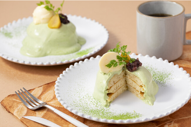 もちもちとしたパンケーキに、とろとろのかぶせ茶クリームを纏わせた一品。飾られた栗と粒餡、バニラアイスの甘みとともに、お口の中に広がるかぶせ茶の上品なほろ苦さをお楽しみください。