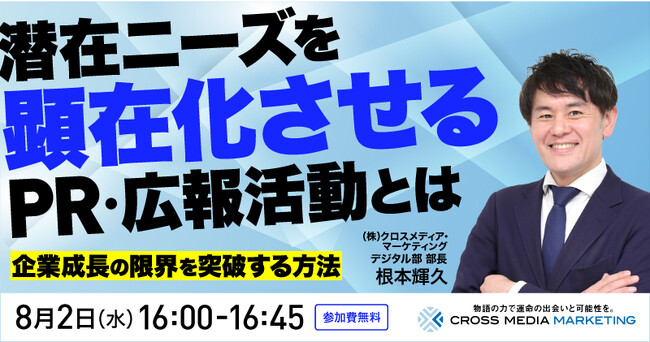 株式会社クロスメディア・マーケティング(本社:東京都渋谷区、代表取締役 美濃部哲也、以下クロスメディア・マーケティング)は、企業のPR担当者、広報担当者向けに【これからの時代の広報戦略】オウンドメディアを活用したブランディング手法セミナーを、2023年8月2日(火)16:00よりオンラインにて開催いたします。