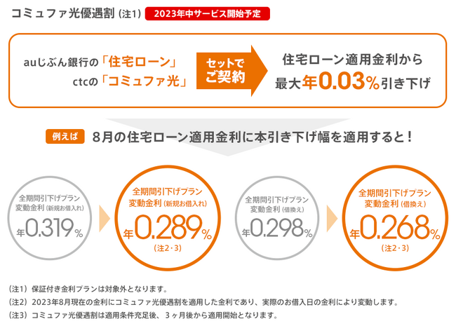 auじぶん銀行「住宅ローン金利優遇割」の対象拡大に向けて、ctc「コミュファ光」の利用による住宅ローン金利引き下げサービスを提供予定