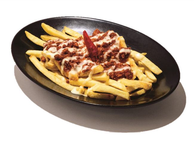 おつまみの定番のフライドポテトに激辛ミートソースとチーズをトッピングしました。ハイボールやビールのお供にお召し上がり下さい。