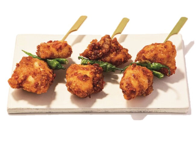 むね肉の唐揚げにクミンやコリアンダーが香る激辛シーズニングを合わせて、串に仕上げました。世界一辛い唐辛子としてギネスに登録されている「キャロライナ・リーパー」を使用しています。