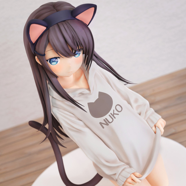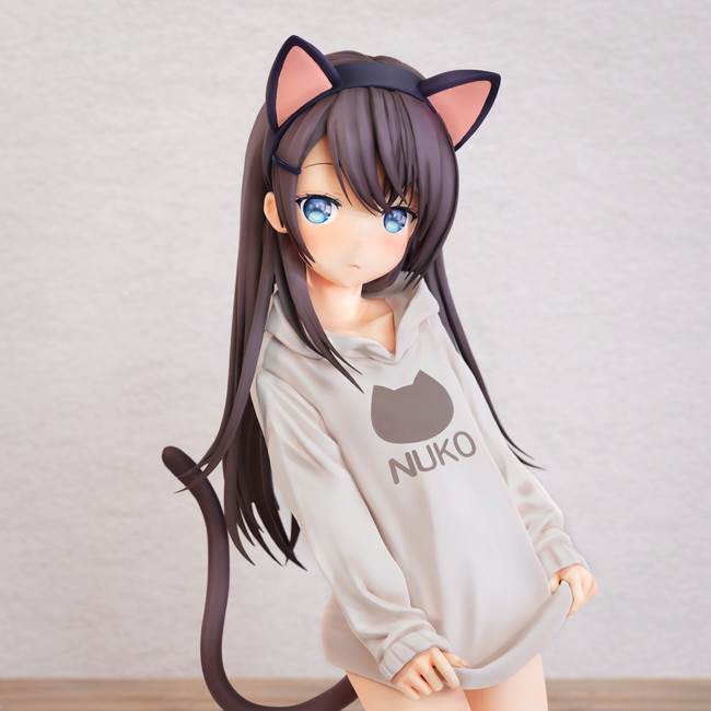 イラストレーターかぷりちお先生のオリジナルイラスト「緒稚りぷか」がハイクオリティな等身大フィギュアとして新登場!同じ目線で楽しめるNUKOパーカー姿の、ねこ耳しっぽがかわいらしいりぷかちゃんが、あなたのお部屋にお邪魔します。