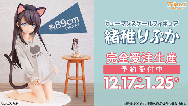 フィギュアブランド「Bfull FOTS JAPAN」では、イラストレーター・かぷりちお オリジナルイラスト「緒稚りぷか」の等身大フィギュア発売を決定いたしました。本日12月17日(金)16:00より、Bfullが運営するECサイトBfullオンラインショップ(URL:http://www.fots.jp/)にて予約受付開始。