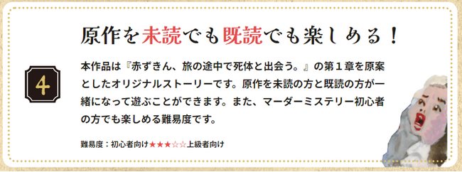 小説の世界に飛び込める! 原作小説を読んだ方も、これから読む方も楽しめる「小説発マーダーミステリー」!