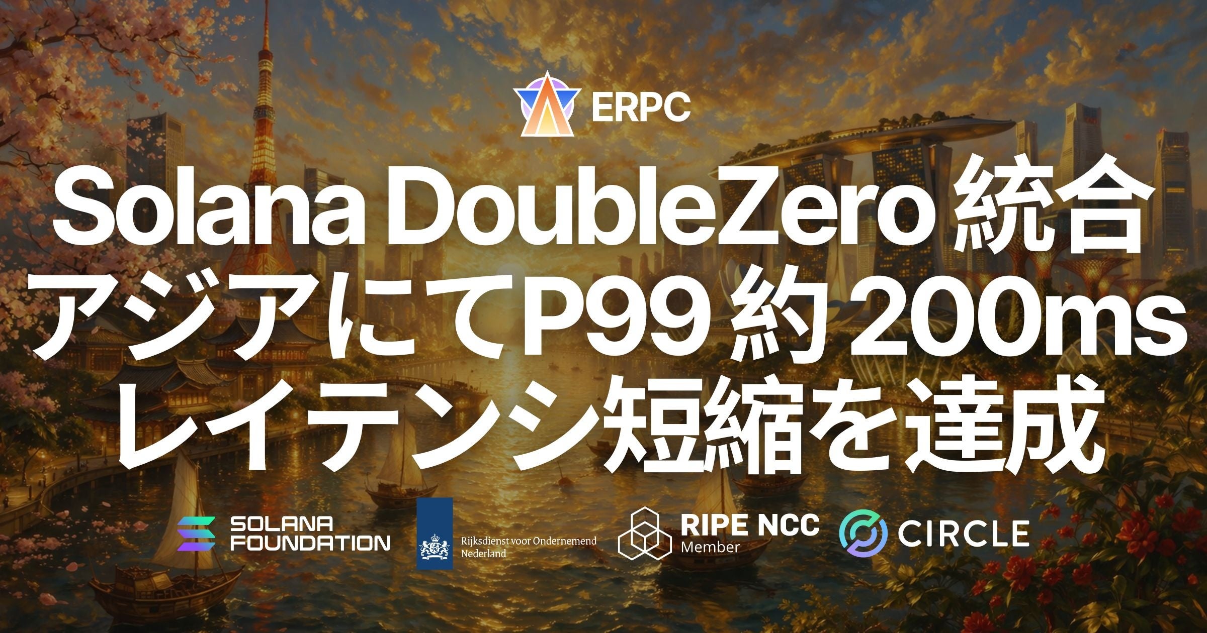 これまで、アジアで Solana の高速な開発環境を用意するには、地理的制約による性能上の妥協が避けられませんでした。ERPC は、DoubleZero の専用ファイバーネットワークを活用することで、この制約を構造的に解消しています。今後、アジアからも Solana チェーン上で数多くのイノベーションが生まれていく中で、そのスケールをインフラの側から支えていきます。