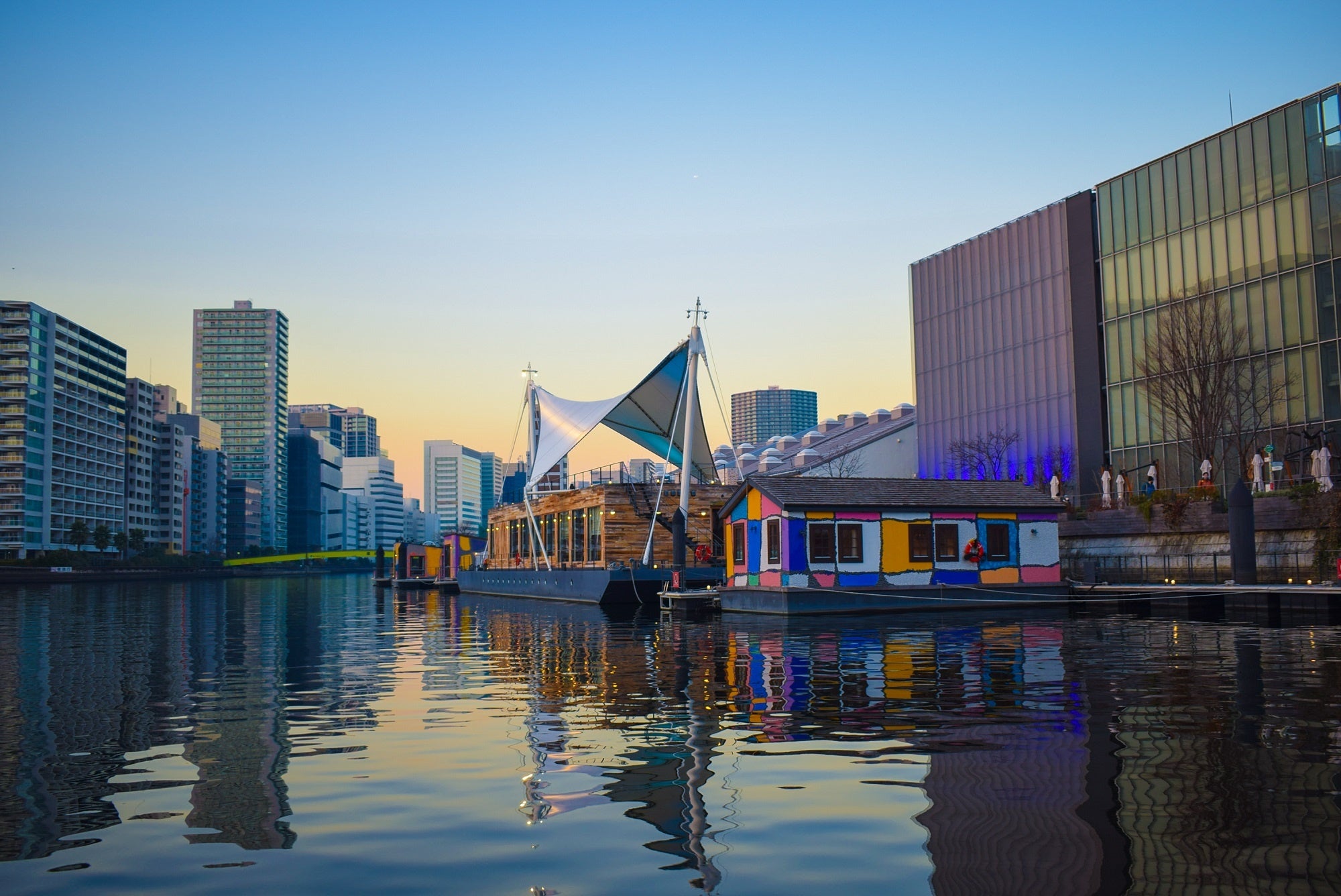 会場から徒歩5分の水上アートホテル「PETALS TOKYO」では、運河の上に浮かぶロケーションにちなみ、「河童」をテーマにした特別な宿泊プランを販売します。古来より日本の水辺に暮らすと伝えられる河童は、時に「水の守り神」とも称され、天王洲ともゆかりの深い存在です。本プランでは、きゅうり風味のKAPPA MOJITO(カッパモヒート)とモダンな柄で普段使いしやすい河童柄の手ぬぐい、展覧会チケットを宿泊とセットにし、水上という舞台ならではの、どこか妖しさをまとった滞在体験をご提案します。