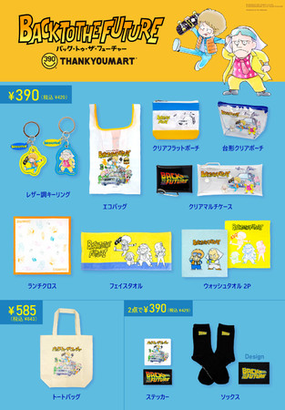 390円(税込429円)を中心としたかわいいアイテムが集まるショップ「サンキューマート」を運営するエルソニック株式会社は、ユニバーサル・ピクチャーズにより1985年に公開された映画『バック・トゥ・ザ・フューチャー』と初コラボしたアイテムを7月中旬より入荷順次販売開始いたします。映画の登場人物たちが漫画調アートに変身した、ポップなデザインの全14アイテムです。