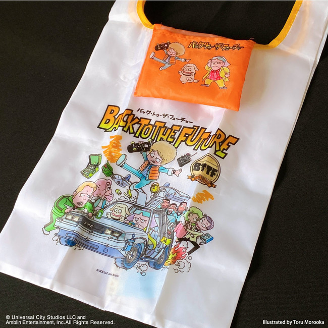 今回のコラボ商品は公式ロゴのイエローをキーカラーに採用し、漫画調アートの可愛さが際立つよう全体的にポップなデザインに仕上げました。カラフルなイラストが目を引く線画調デザインのアイテムも多く取り入れています。また、主人公のマーティやドクだけでなくドクの愛犬「アインシュタイン」や作中に登場する車型タイムマシンの「デロリアン」といった映画のキーとなる登場アイテムもデザインに落とし、他では手に入れることの出来ないアイテムに仕上げています。