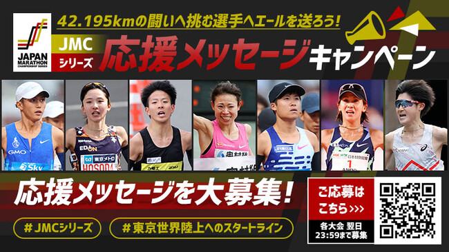この度、「ジャパンマラソンチャンピオンシップシリーズ(以下、JMC シリーズ)」に出場する選手に向けた「応援メッセージキャンペーン」を実施いたします!
