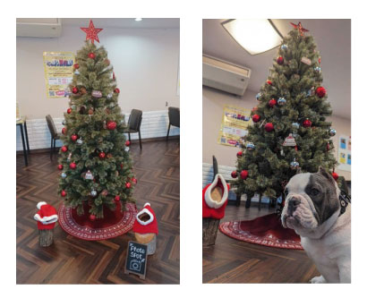 こちらのクリスマスツリーには、いろんな犬種のわんちゃんがオーナメントに