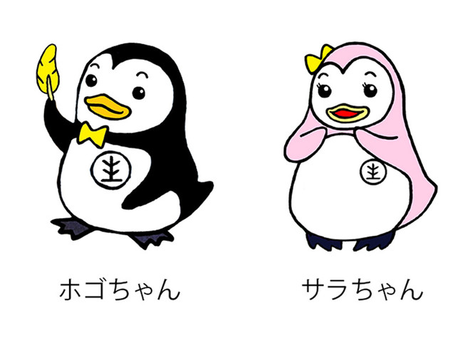 本運動のマスコットキャラクターには、「非行しない」→「飛行しない」→「ペンギン」という発想から生まれた更生ペンギンの「ホゴちゃん」「サラちゃん」が起用されています。立ち直ろうとしている人をいつも温かく見守り、犯罪や非行のない明るい社会を願う心優しいペンギンです。
