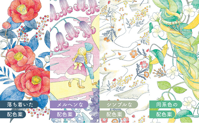 ぬり絵が好きだけど、いつも同じ色を塗ってしまう……、花はピンク、葉っぱはミドリ……そんな固定概念から自由になり、自分だけのセンスのいい配色を楽しめるようになります。