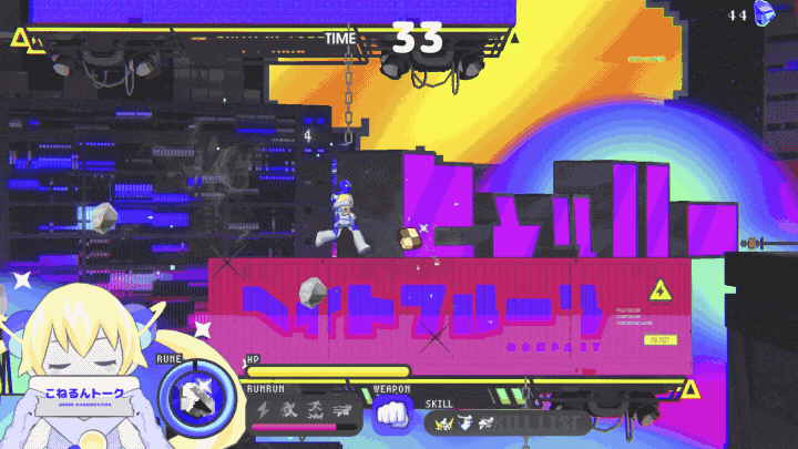 こねるはドーナツが大好き!ステージ中に現れる「概念ドーナツ」を取得すると溜まる「るんるんゲージ」がMAXに到達すると、こねるが内包する莫大なエネルギーがあなたの機動力を爆発させます。触れるだけで敵を吹き飛ばす高速ラン、天を衝く超ジャンプ力、イナズマのような神速ダッシュと、ゲージを時間消費しきるまで(彼女の気が済むまで)やりたい放題の時間が続きます。このじゃじゃ馬モードにふりまわされるか…身を任せるか…乗りこなすか…そこはあなたの気分次第!