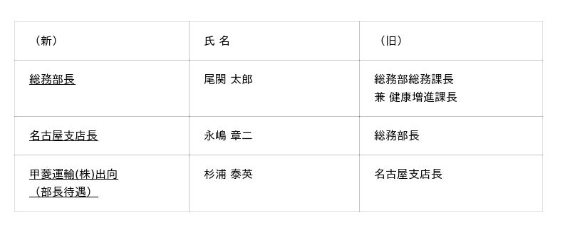 2026年1月1日付 部長以上の異動 ※下線部が変更箇所となります。