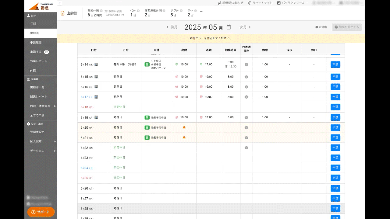 働き方の多様化が進むなか、客観的な勤務実態の把握は多くの企業にとって重要な課題です。PCログ機能は、勤務実態の可視化や未払い残業リスクの低減、IPO準備における勤怠精度の向上といったニーズに応える手段としてご活用いただけます。従来は管理者主体だった勤務実態の確認・管理も、本機能により従業員自身がスムーズに対応しやすくなるなど、現場にとっても取り組みやすい形に進化しています。