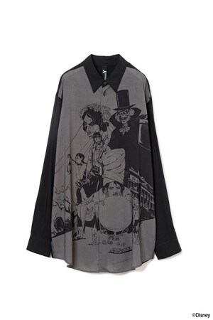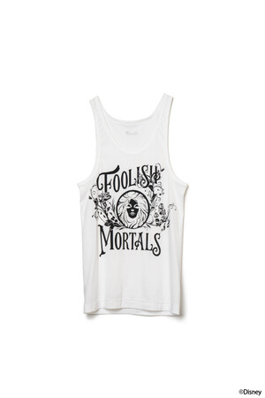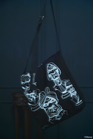 本コレクションでは、Ground Yの独創的な解釈で映画『ホーンテッドマンション』の美しくも不気味な世界観をデザインしています。呪われた館の壁紙や、水晶玉に入った女性「マダム・レオタ」、片手に持つハットボックスがトレードマークの「ハットボックスゴースト」、5人組の音楽グループ「ファントム・ファイブ」など個性豊かなゴースト達のグラフィックがプリントされたシャツやTシャツ、トートバッグを展開いたします。「ファントム・ファイブ」がプリントされたキャンバストートバッグは、ラフォーレ原宿店限定カラーのホワイトが登場いたします。