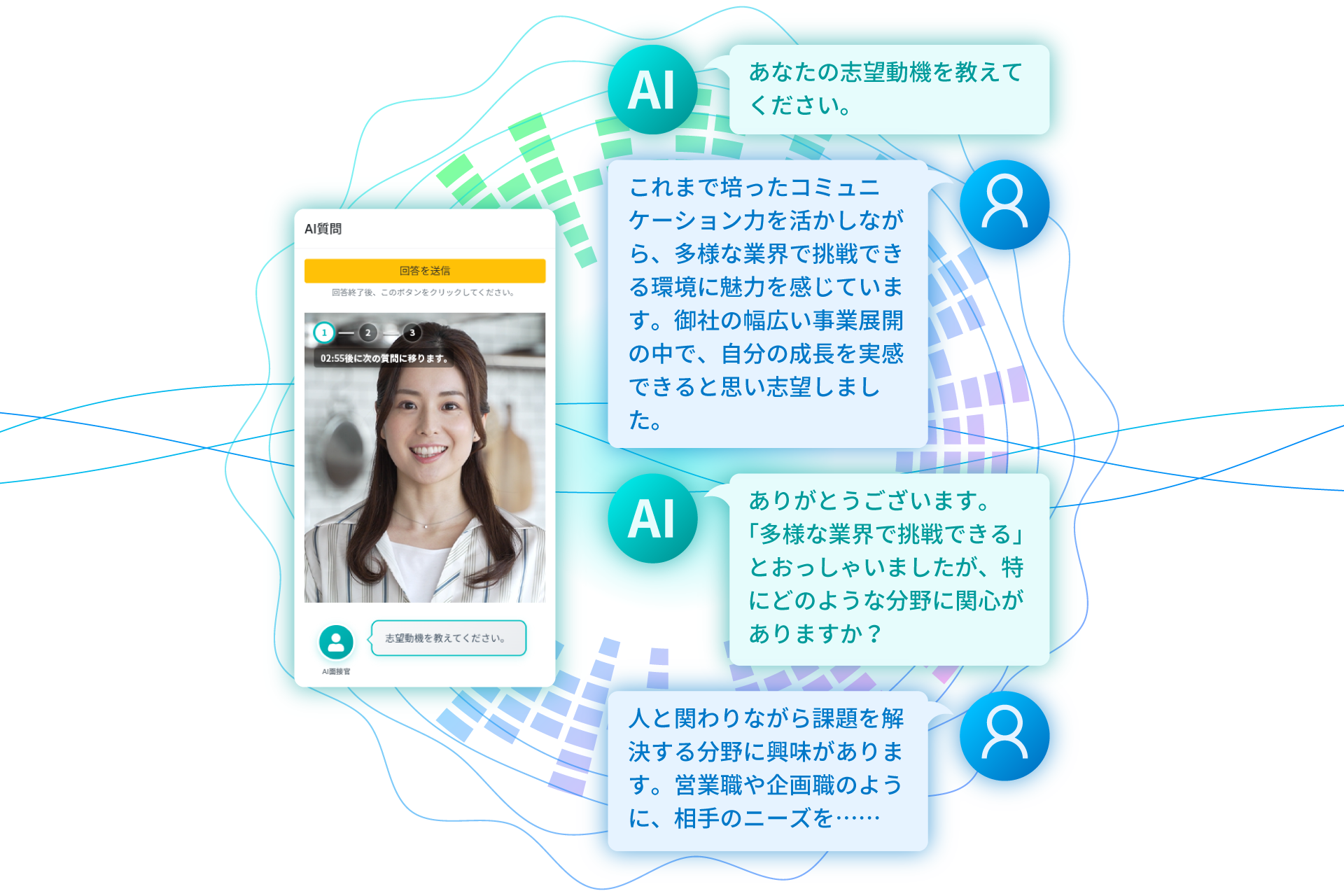 AIとの長時間対話による応募者の疲弊を防ぎつつ、必要な情報を効率的に収集できます。