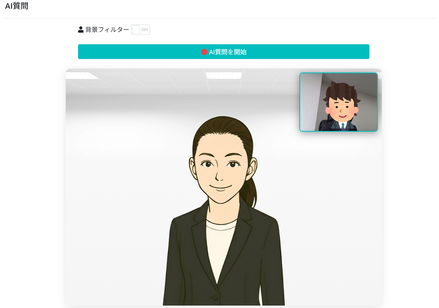 AI面接利用時、画面上にアバター面接官が表示されます。 実際の面接に近い形でのやり取りが可能となり、応募者はリラックスして面接に臨め自然な受け答えや表現を行いやすくなります。[画像2: https://prcdn.freetls.fastly.net/release_image/14777/553/14777-553-d4676bc8474def248e49570ca133cb8a-1468x1030.png?width=536&quality=85%2C75&format=jpeg&auto=webp&fit=bounds&bg-color=fff ]