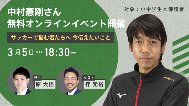 3/5(土)18時30分〜【中村憲剛さん】無料オンラインイベント開催「サッカーで悩む君たちへ、今伝えたいこと」