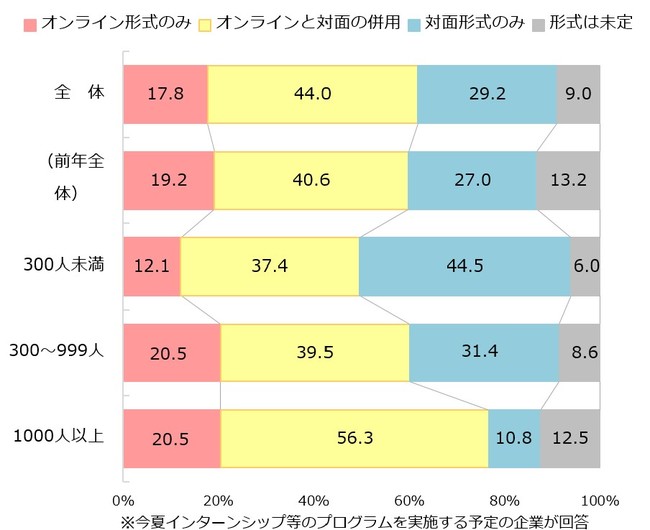 (*)「インターンシップ(就業体験を伴う複数日程のプログラム)」に限定せず、1日以内のプログラムも含めて調査