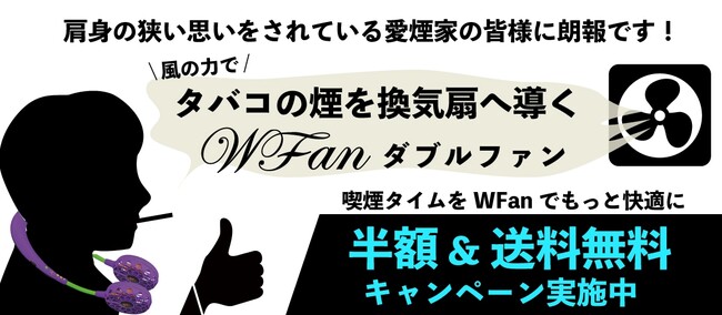 肩身の狭い愛煙家の皆様の喫煙タイムをWFanで少しでも快適にしたいという気持ちを込めて、半額&送料無料キャンペーンを実施します。
